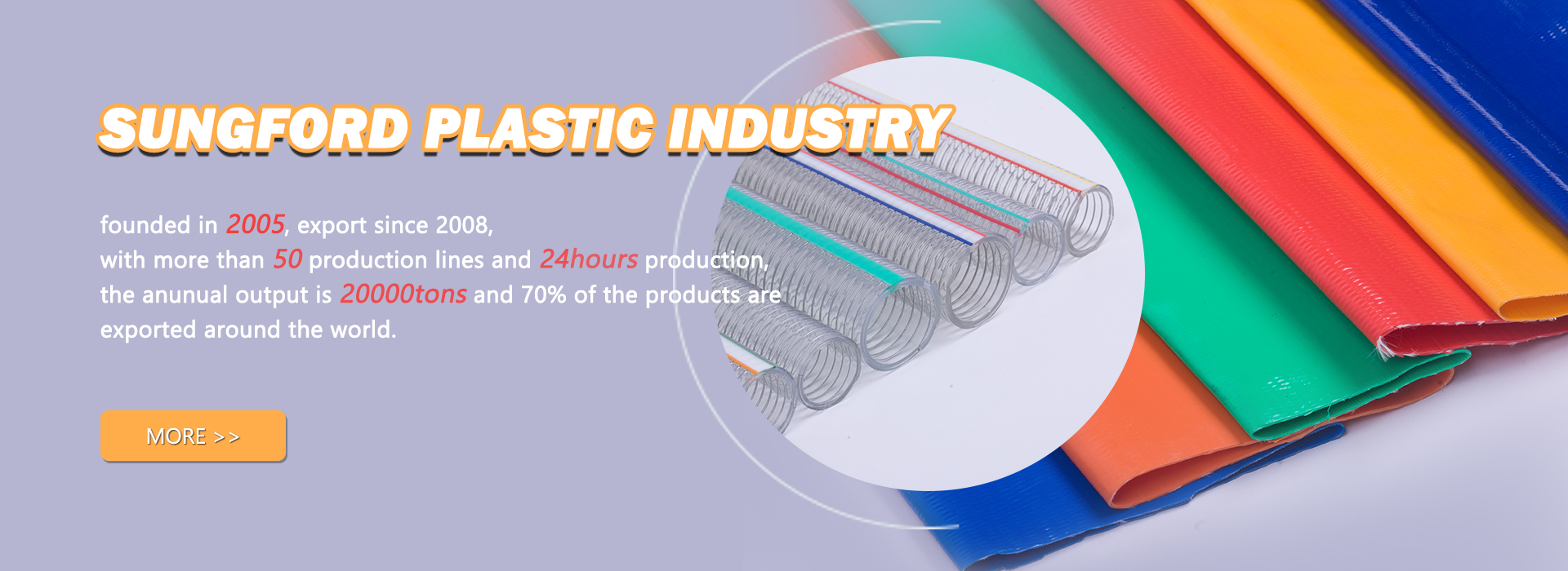 In the past more than ten years, We have been committed to the development, production and sales of pvc hoses, including PVC lay flat hose, PVC fiber reinforced hose, PVC steel wire hose, PVC suction hose, PVC high pressure hose, PVC garden hose, PVC clear hose, PVC welding hose, PVC air hose, etc,Read Mor